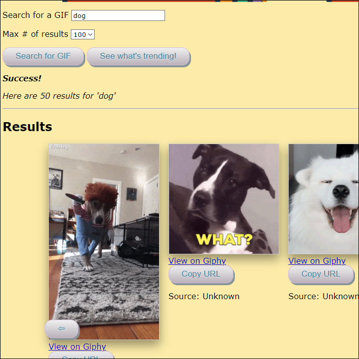 A web application developed by myself in the spring of 2020 using Giphy application programming interface.